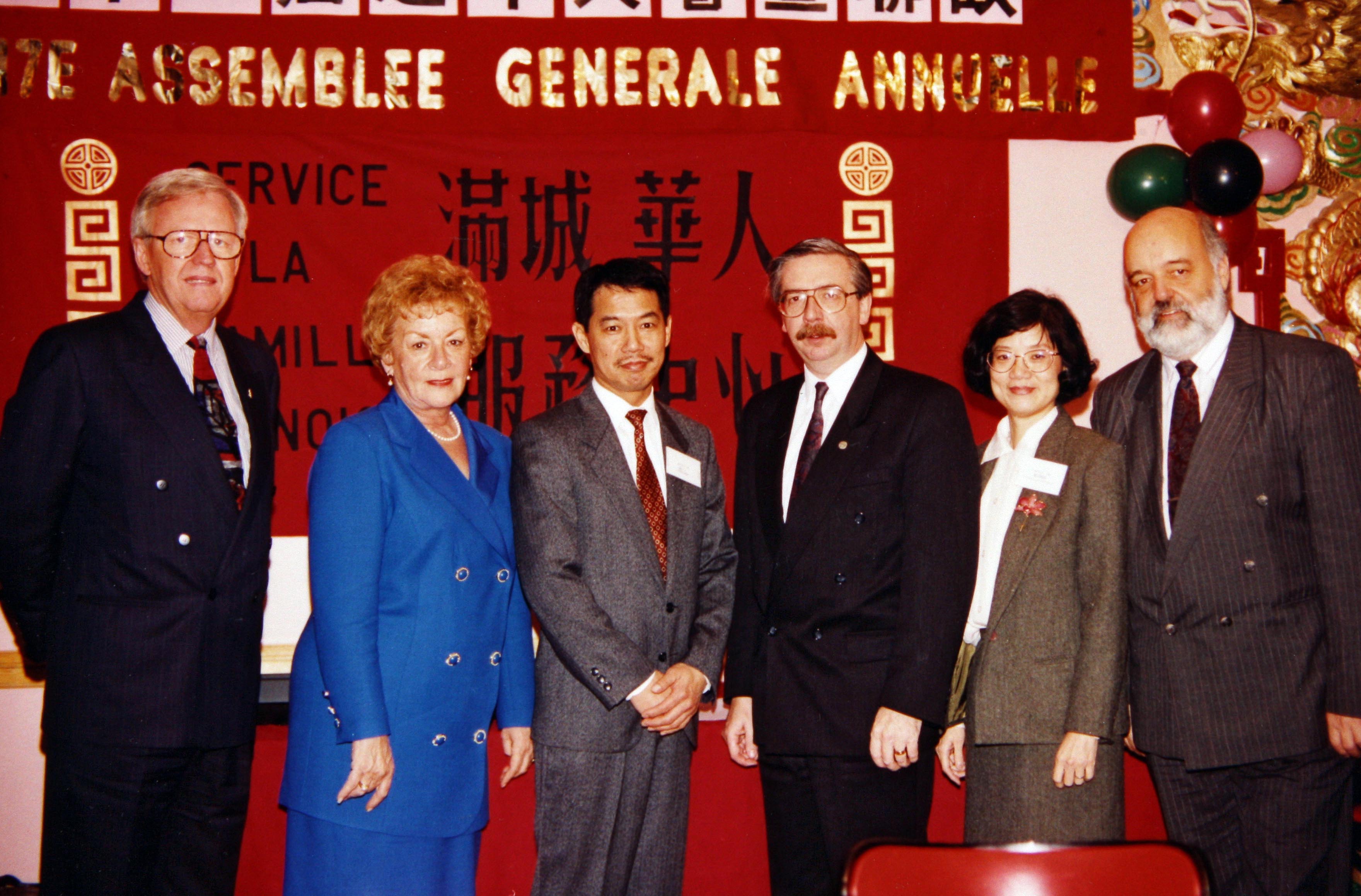 Canadiens d’origine chinoise; Affiches; Congrès; Chinois (Langue); Vêtements d’homme; Vêtements de femme; Maires; Dix-septième (17e) assemblée générale annuelle; Paul Leduc; 4 décembre 1993;