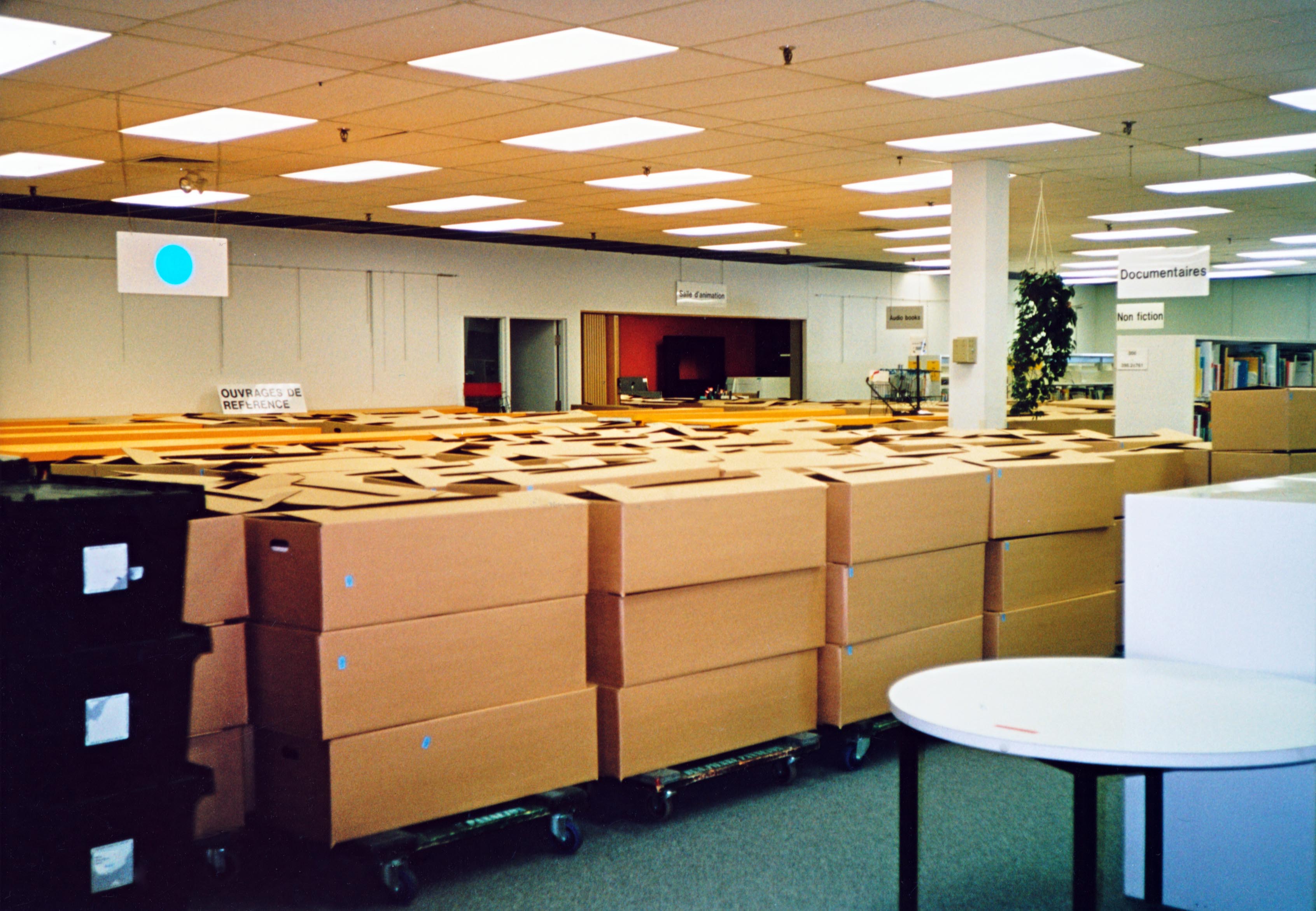 Déménagement de la bibliothèque no.2 Published 31 juillet 2017 at 3384 × 2342 in La Bibliothèque actuelle Rayonnages (bibliothèques); Boîtes; Bibliothèque municipale de Brossard; Déménagement de la bibliothèque; Place Brossard;